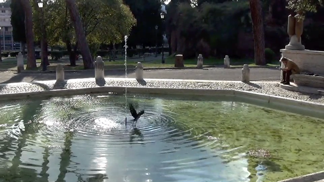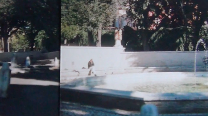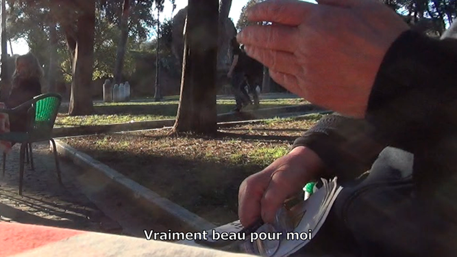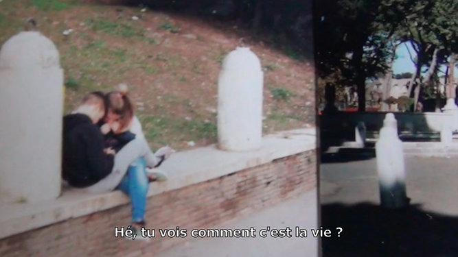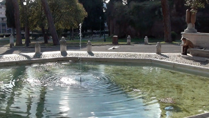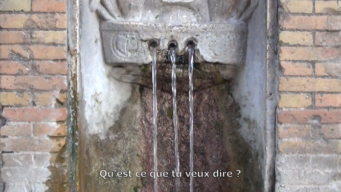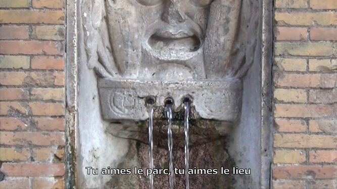 C’est dans cet endroit que le film a vu le jour. Les réponses d’une habitante du lieu nous accompagnent et nous donnent un point de vue sur celui-ci. Un territoire dédié aux loisirs où l’on observe des actions immuables. Des enfants jouent. Des personnes se reposent, se parlent, se regardent. Beaucoup traversent et habitent cet espace : des touristes, des riverains, des sans-abris. Ils viennent y trouver refuge au milieu du tumulte de la ville. Tout le monde peut ici tranquillement profiter des rayons du soleil et se rafraîchir avec l’eau des fontaines. Bercés par le bruit de l’eau, par la musique des rues et par les suites d’images qui défilent, les spectateurs peuvent construire un regard sur cet environnement.
